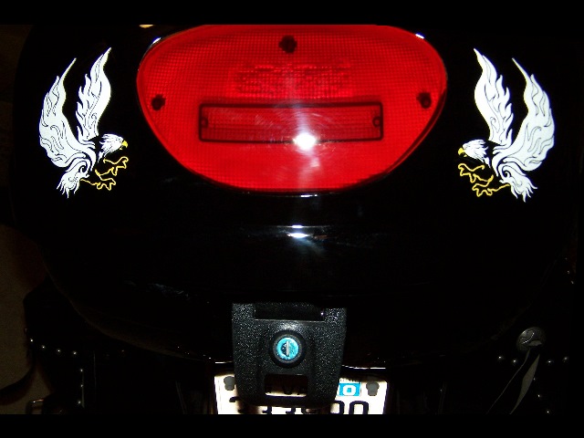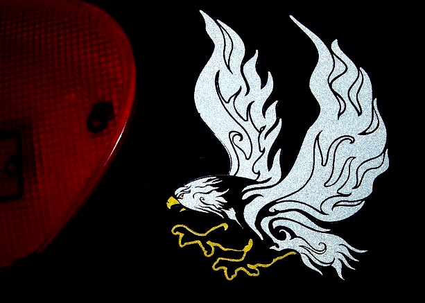 Eagle Flag Decals printed in bright night reflective colors are sure to please the eye and can add additional night conspicuity to your ride.