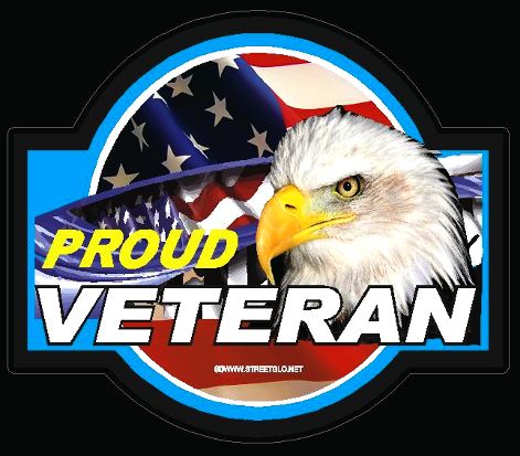 Our Proud Veteran decal honors all veterans of all wars. Featured here is a photo real eagle and Flag decal print. Decal has a black border. It is clear coated and protected from the elements and fading.