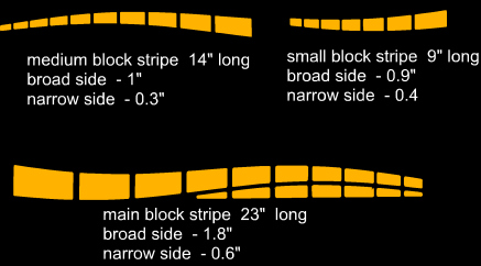 SpeedBlocks are a free form block striping kit. This sheet contains over 138 running inches of reflelctive motorcycle graphics. The decals are provided on a sheet of wax backing paper with a peel and place membrain on the top.