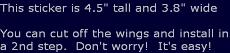 This larger sticker is specially made so it can be cut and applied on a highly curved surface (such as a helmet sticker). Just cut off the wings and install them 2nd.